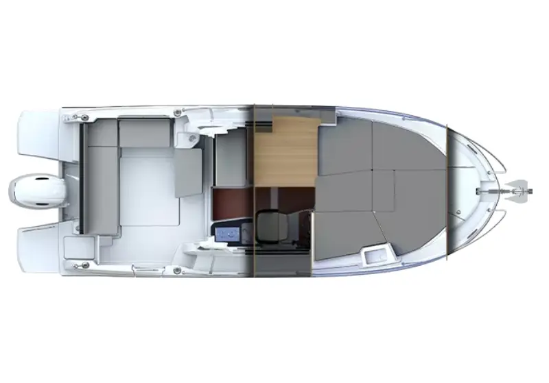 Resueltamente dirigido hacia los placeres náuticos en familia, el Antares 7 adopta soluciones innovadoras que hacen de él la plataforma ideal para las salidas prolongadas. Verdadero weekender confortable y versátil, gracias a sus interiores pensados para mejorar la navegación y la vida a bordo, el Antares 7 está también disponible en versión Fishing, con un plano de cubierta y equipos que auguran formidables sesiones de pesca