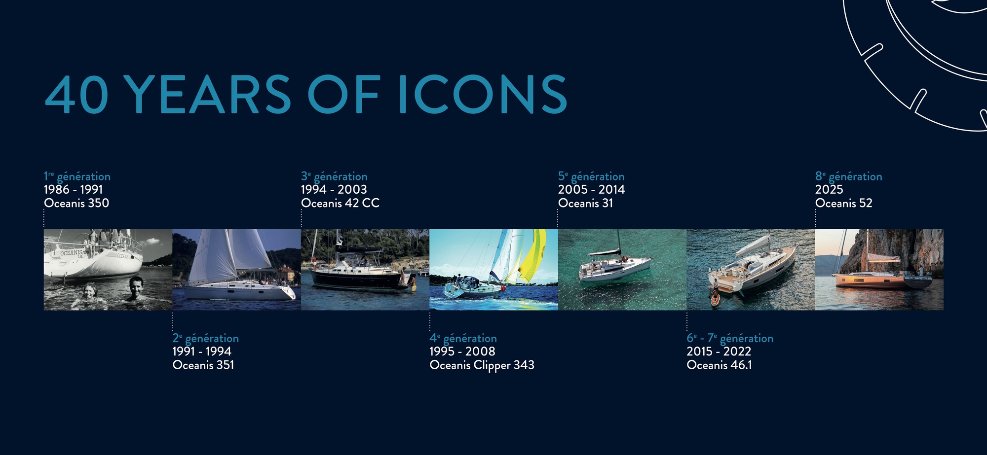 Cuatro décadas en las que Oceanis se ha convertido en sinónimo de confort, innovación, seguridad y placer de navegación.