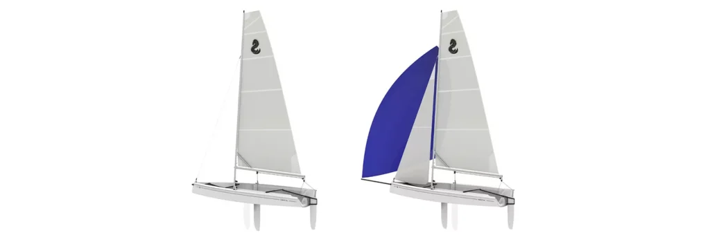 La carena moderna, amplia y plana con largos pantoques y su proa invertida crean un barco estable y seguro con un par de retorno suficientemente importante para prescindir de un trapecio.
