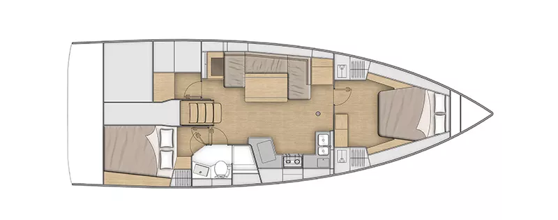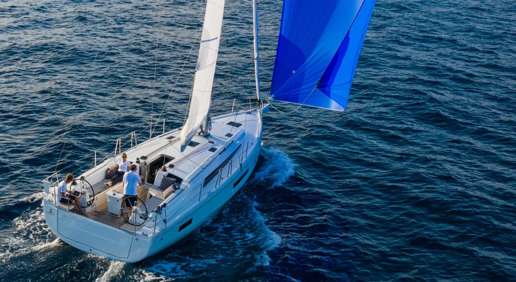 La ergonomía y la circulación en la bañera facilitan la vida a bordo. Nada obstaculiza la plenitud de estar en fondeo. Deseos de chapotear alrededor del barco en esta cala paradisiaca ?. El espejo de popa se transforma fácilmente en una plataforma de baño inmensa tan amplia como la de los Oceanis más grandes. El acceso al mar es un modelo del género, forma parte integrante de la vida a bordo de un velero.