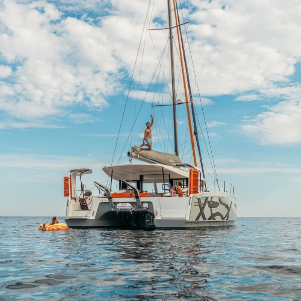 El Excess 13 ofrece respuestas a todas las formas de querer el mar. En el fondeo, se convierte en una plataforma ideal para las actividades náuticas y los retos más atrevidos.