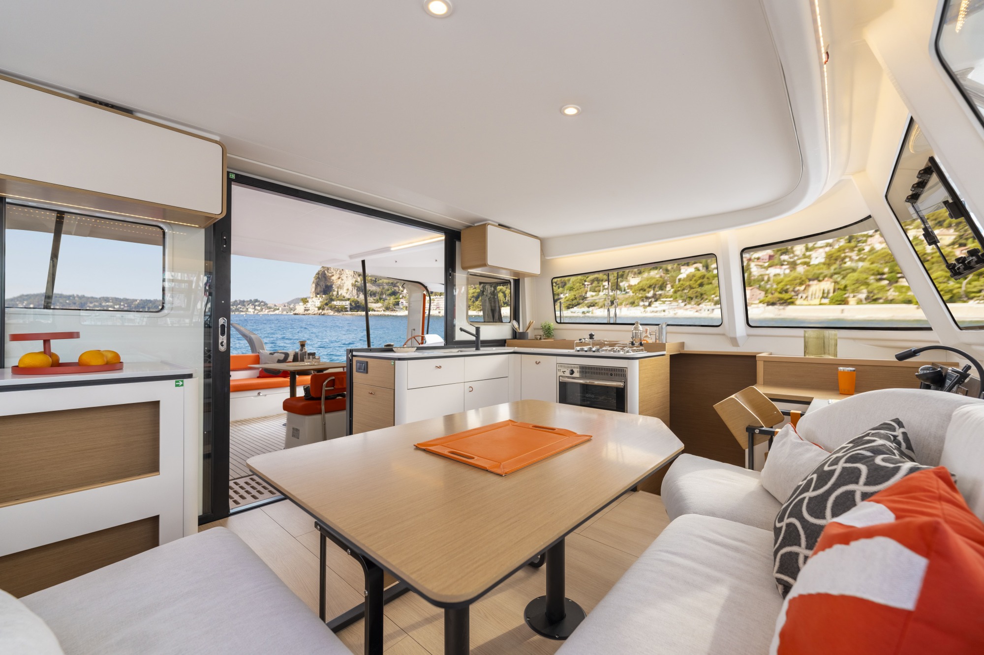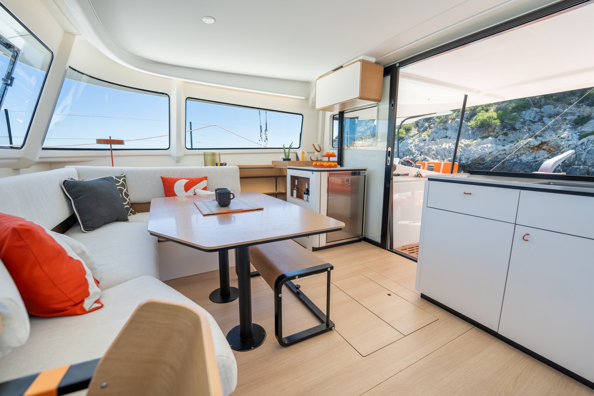 La forma de los cascos, el peso, la estructura de composite, la distribución, la ergonomía, la eficacia del plano velico… Todo en este nuevo Excess está diseñado en torno al placer de navegar con facilidad y vivir cómodamente a bordo. «
