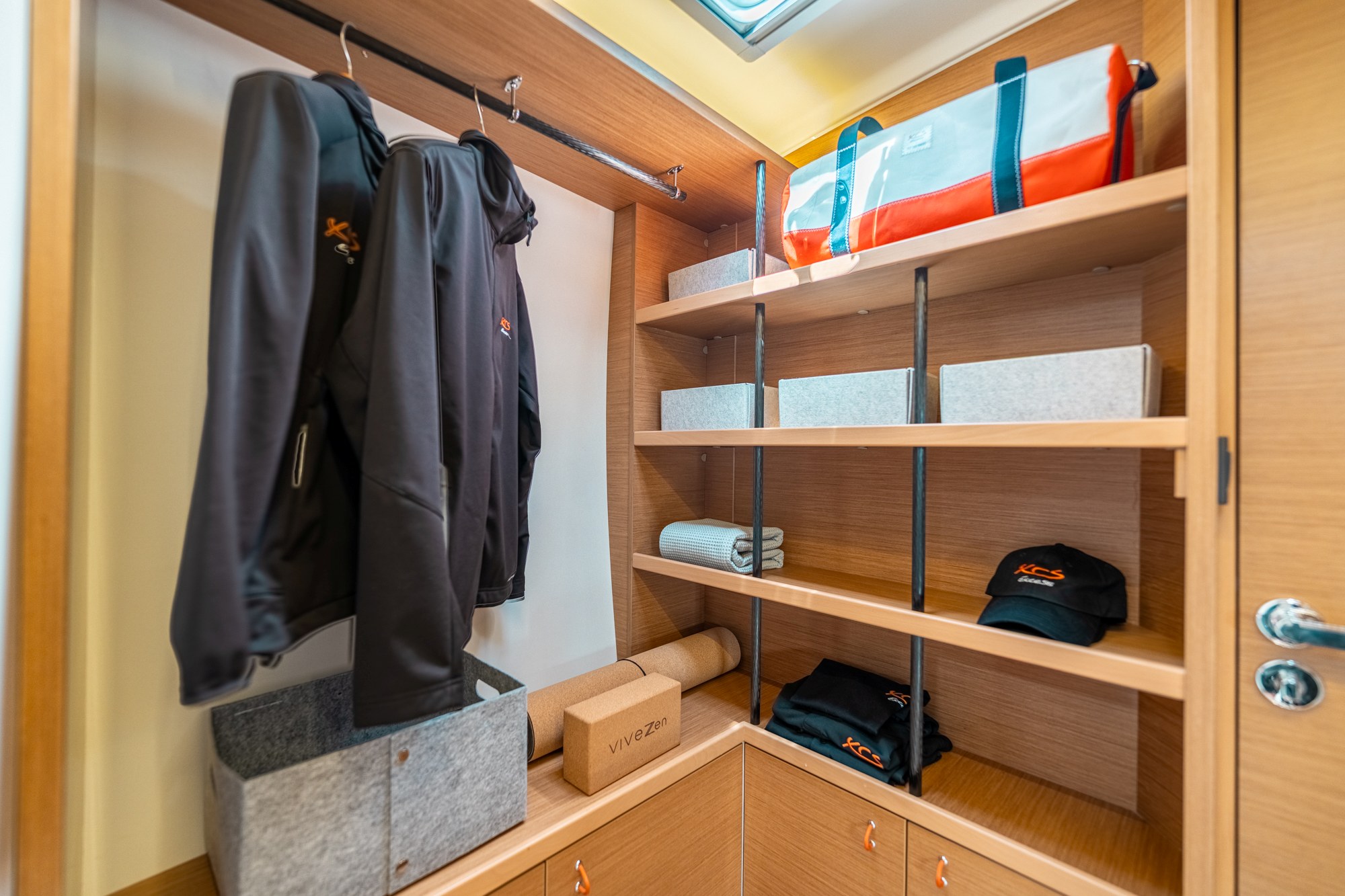 « Menos es más significa una búsqueda constante de la optimización. En el Excess 13, entre otras cosas, hemos instalado en la cubierta un sistema de recuperación del agua de lluvia, que se almacena en un depósito. Un sistema de ventilación eficaz permite limitar la potencia del sistema de aire acondicionado instalado. En los camarotes, las puertas tienen una doble función, como puerta de entrada y como puerta de armario. Cuando una está abierta, la otra está cerrada. Esto puede parecer anecdótico. Pero menos materiales y más espacio de circulación son pequeños detalles que, en conjunto, marcan la diferencia. »